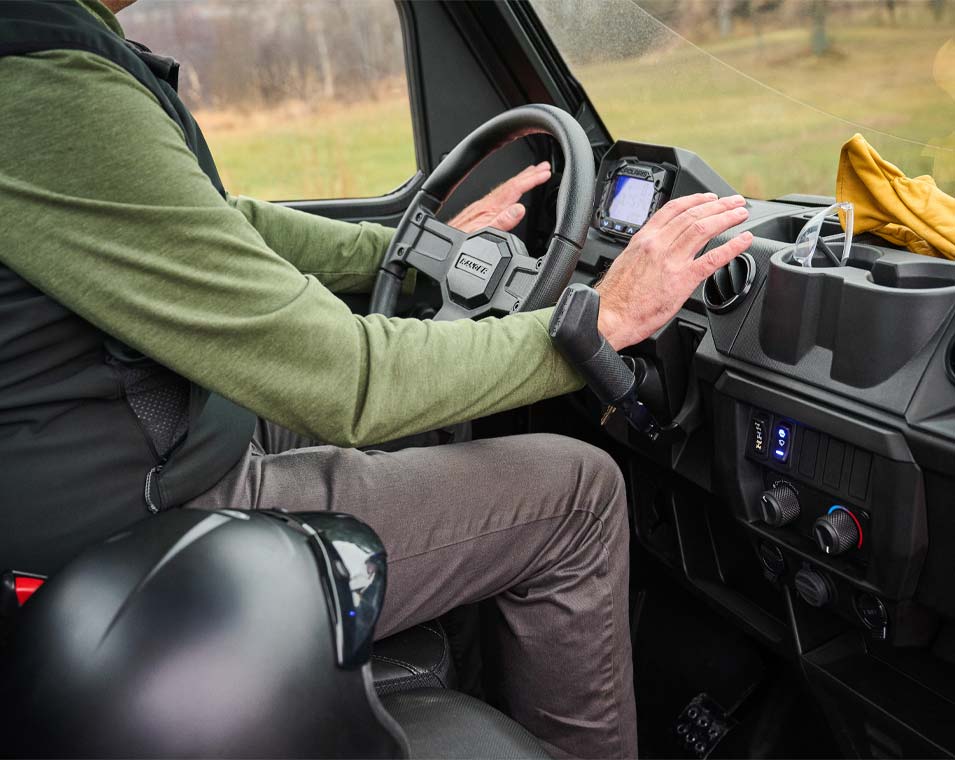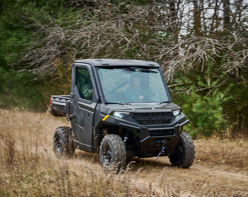 Stay warm in cool weather, the New RANGER 1000 CAB combines protection from the elements with factory-installed heat and an enclosed cab, so you can get the job done no matter the conditions.